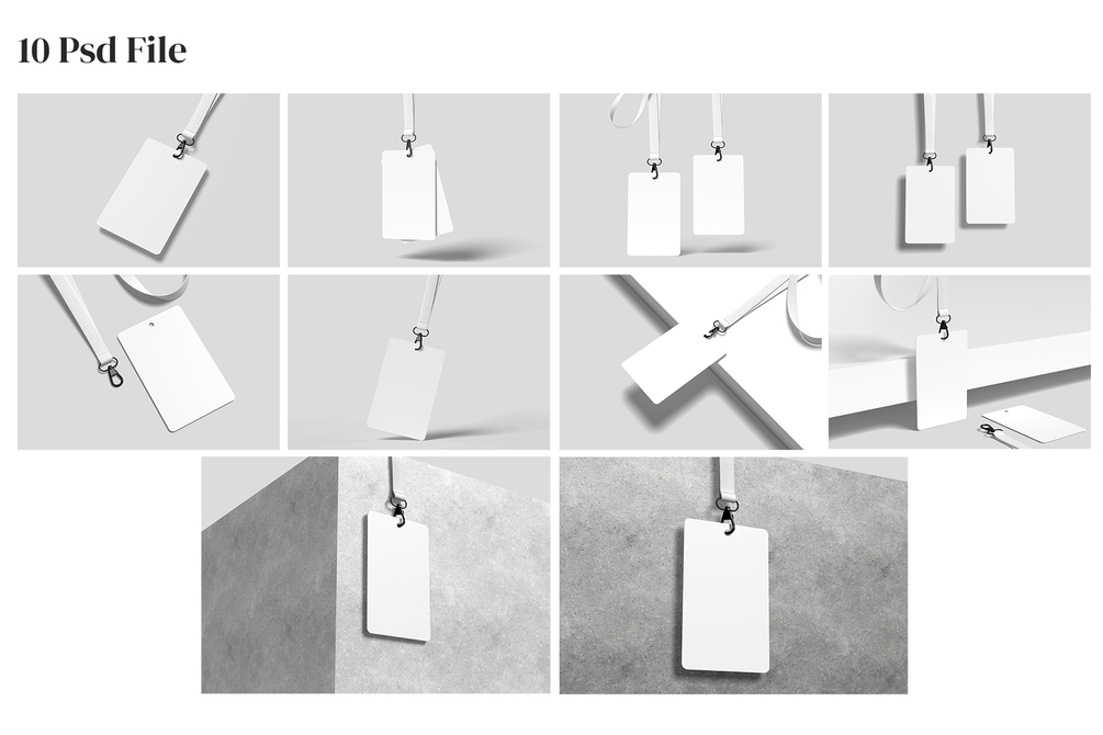This item consist of 10 different styles Id card Mockup design in realistic appearances. These mock-up files uses smart object feature which help you change the design just in seconds (PDF instruction included).